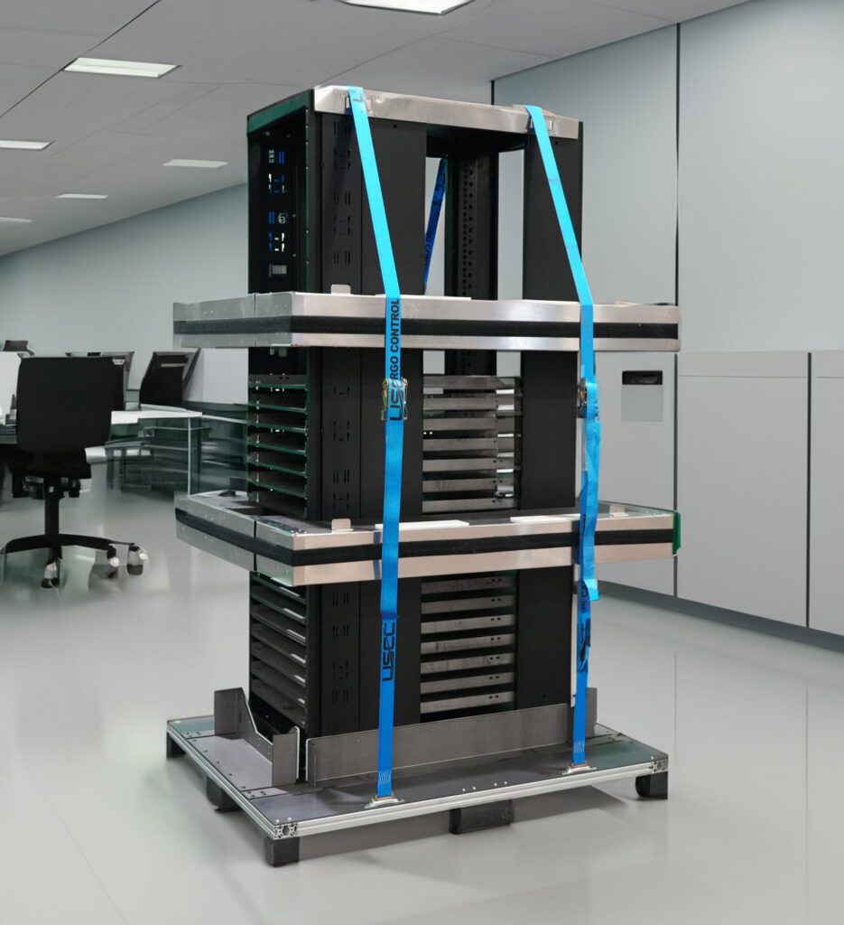 • New rack packaging features revolutionary floating base design that ensures the packaging absorbs shocks and vibrations to keep the racks safe during transit.